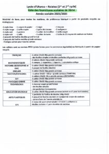 Liste de fournitures scolaires pour la rentrée 2025-2026